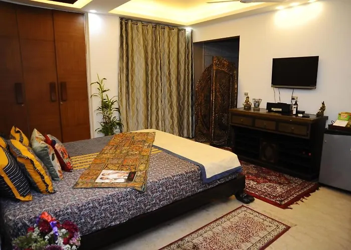 Dit hotel bevindt zich in New Delhi, binnen 300 meter verwijderd van het metrostation Greater Kailash. Dit pension is in de onmiddellijke nabijheid van DT Cinema gevestigd. Deze accommodatie in New Delhi bevindt zich op 20 minuten rijafstand van Qutb Minar. Je kunt de bus nemen bij de Savitri Cinema bushalte, momenten van Mister And Art House New Delhi.